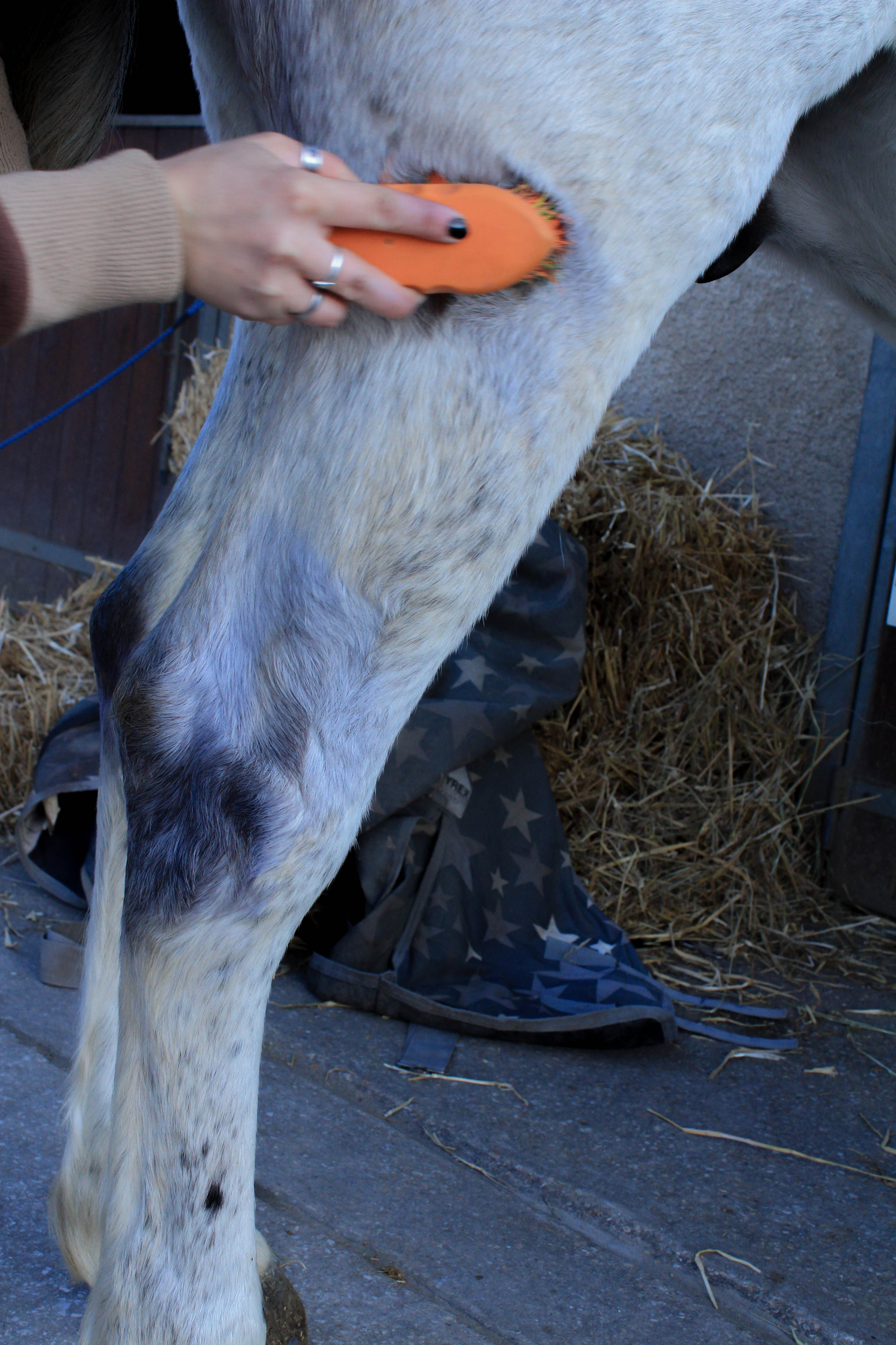 Ce produit au nom si mystérieux est destiné aux chevaux gris/blanc/clairs subissant les attaques sournoises des tâches de crottins ! N’ayant pas de chevaux gris, je n’ai pas de problème du Gris tâché de jaune.