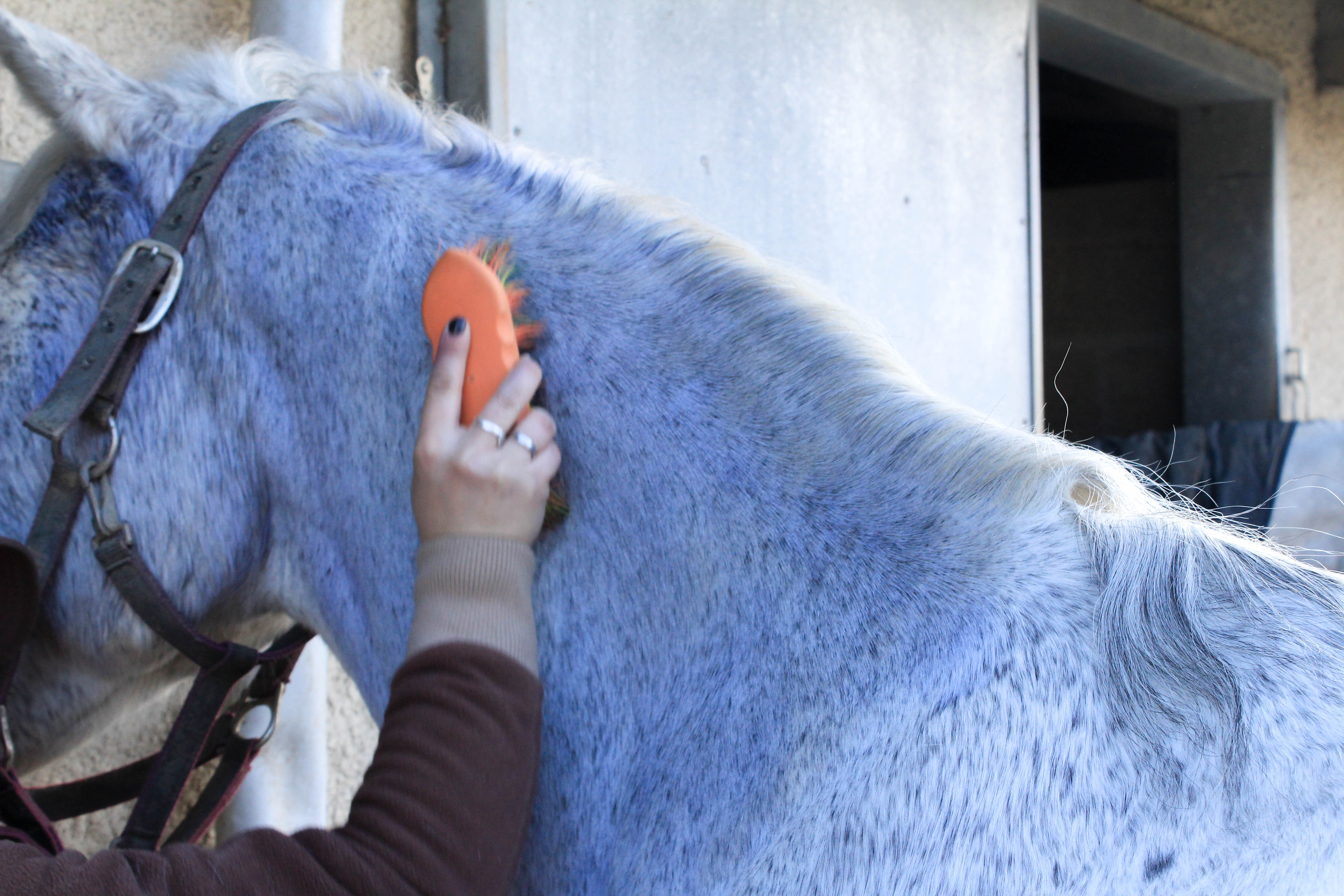 En somme, c’est un produit qui rempli le contrat : surtout que ça rend le cheval tout doux à caliner ! Et il sent bon en plus (ça change de l’odeur de copeaux humide !). Il faudra tout de même avoir une poigne de fer pour frotter les poils colorés et bien enlever la couleur violette !! Mais au moins ça fait les muscles et la séance de pansage devient physique pour le cavalier !