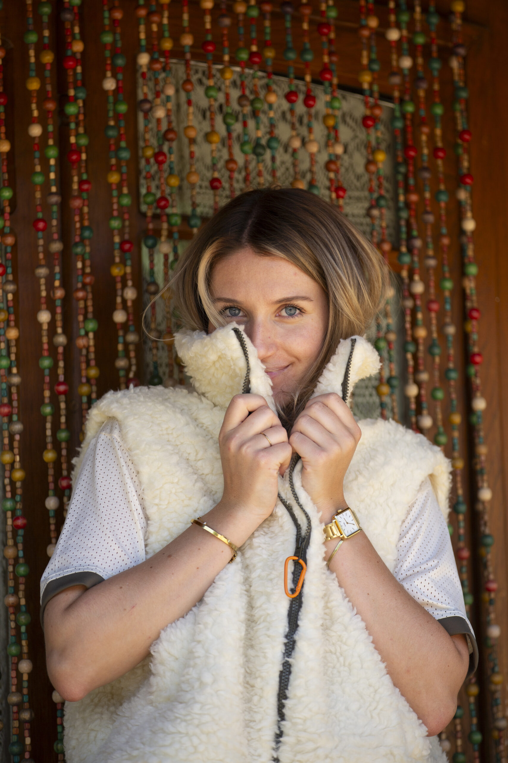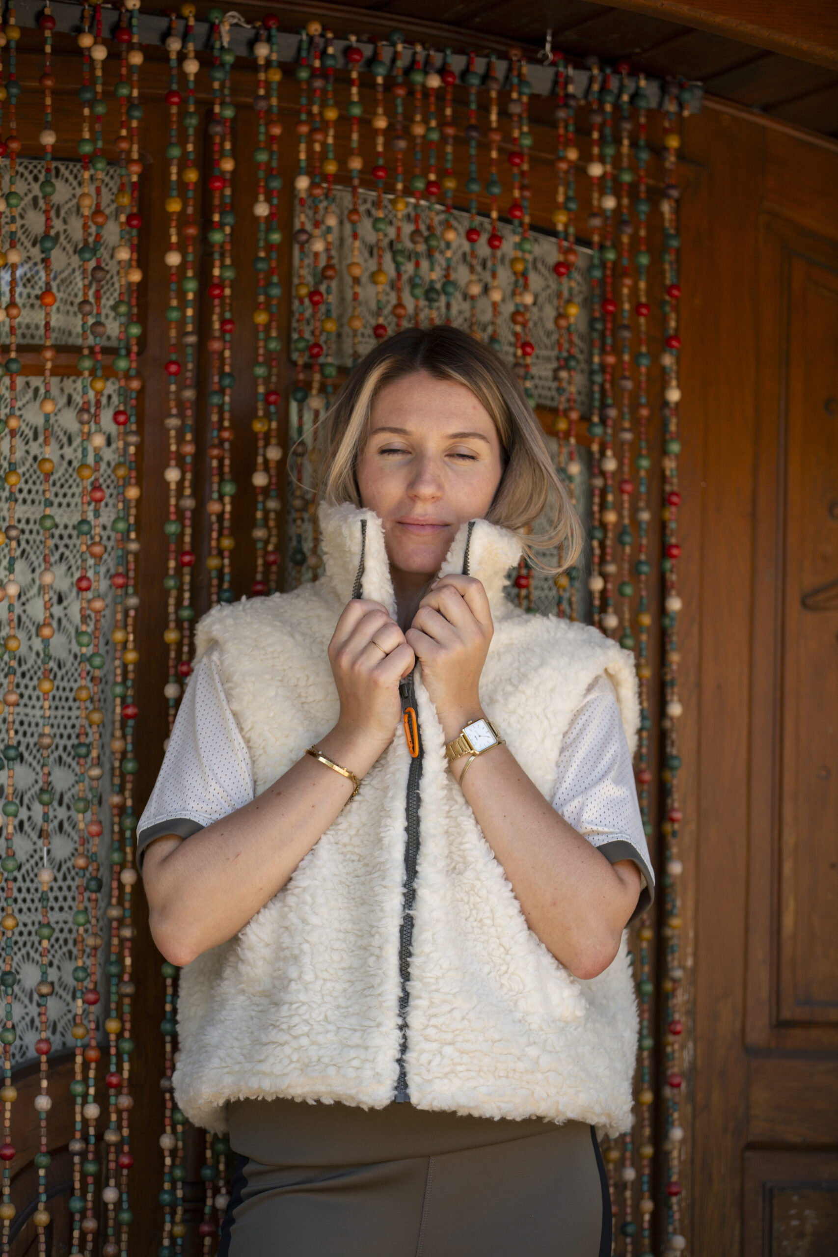 La doudoune ZAIN en laine de mouton est ma pièce préférée de la collection. Je la porte même au travail et elle a déjà fait sensation auprès de mes collègues (qui ne sont pourtant pas cavaliers !). Au niveau du taillant, tu peux prendre la taille 1 si tu fais du 36 au 42, la taille 2 conviendra aux tailles au dessus du 42.